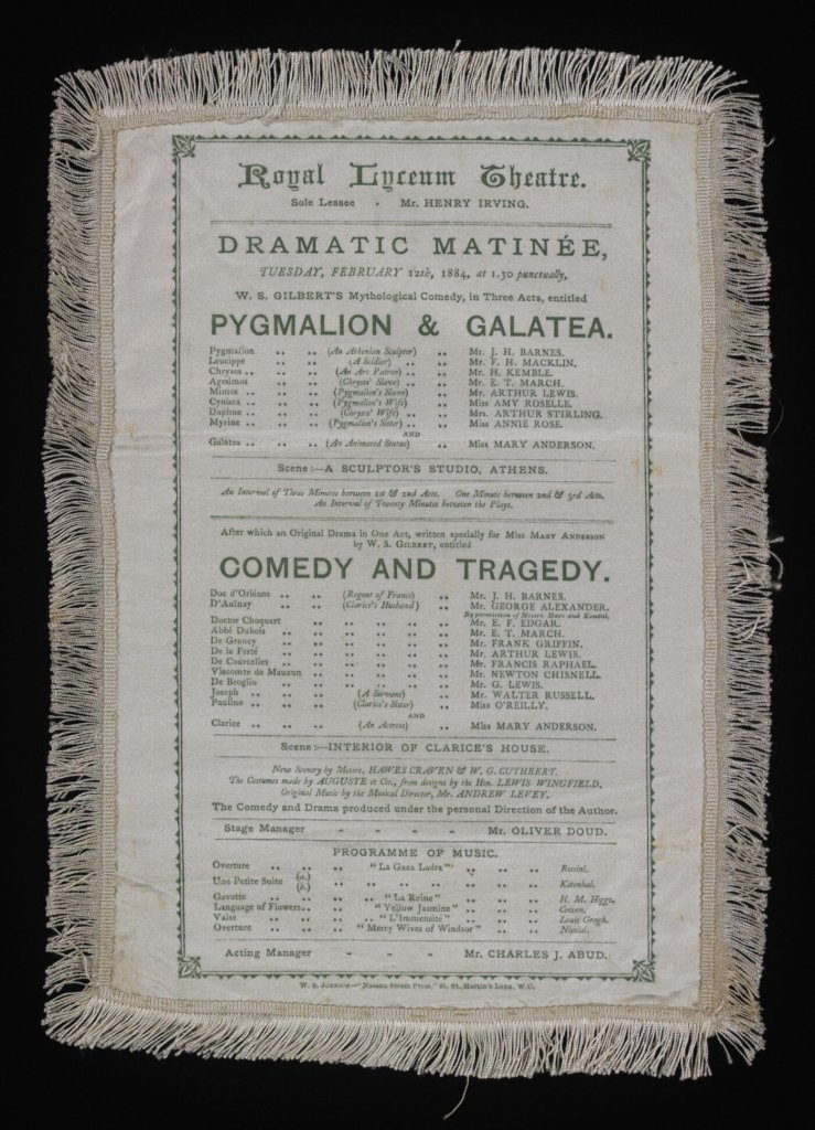 Comedy and Tragedy, programme from the Lyceum Theatre 1885, play written by Gilbert from Gilbert and Sullivan for Mary Anderson, programme with Walter Russell.